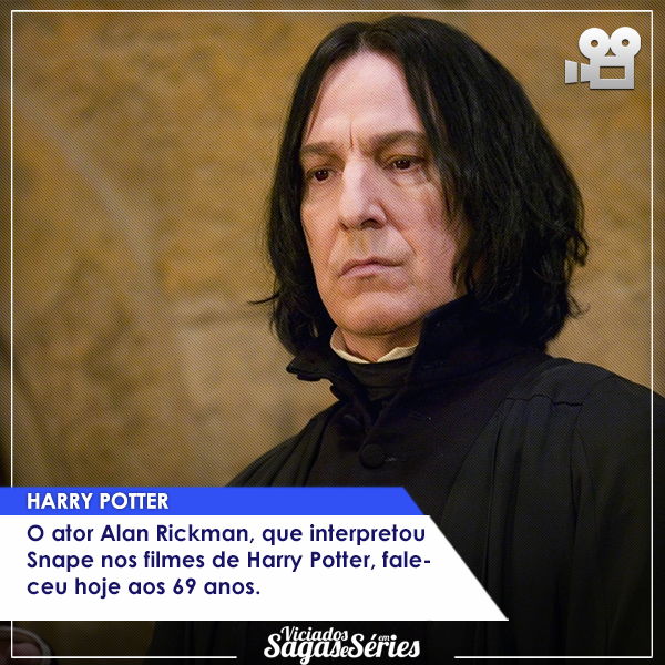 E para fechar o boletim, porque infelizmente o mundo não se faz só de notícias boas, no dia 14 de janeiro perdemos o ator Alan Rickman, que interpretou o professor Snape nos filmes de Harry Potter. O ator tinha 69 anos e estava com câncer.
