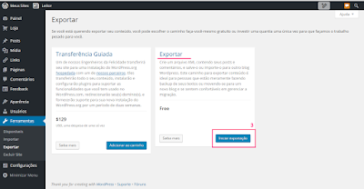1 - Abra o Painel no Wordpress e selecione FERRAMENTAS